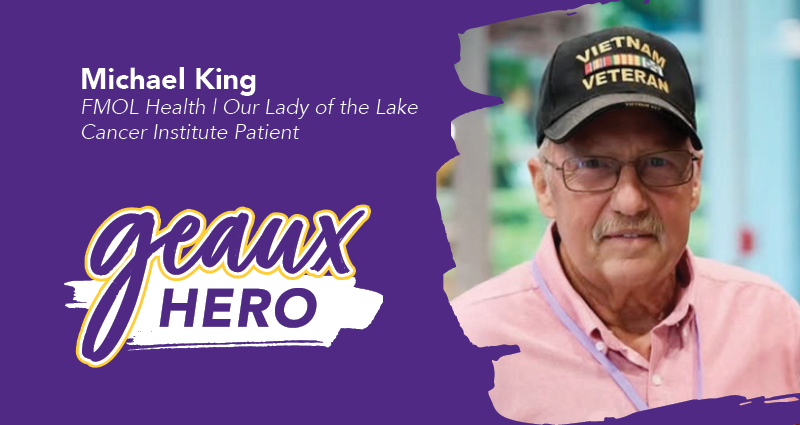 On January 11, Michael will be recognized as an FMOL Health | Our Lady of the Lake Geaux Hero during the LSU Women’s Basketball game against Texas, honoring his resilience, service and strength in the face of adversity.