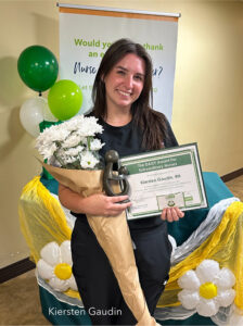In the OB-ED, Kiersten Gaudin, RN, showed another side of that same commitment. A young woman, 38 weeks pregnant and alone, arrived anxious and frightened. When an unexpected C-section became necessary, Kiersten stayed by her side.